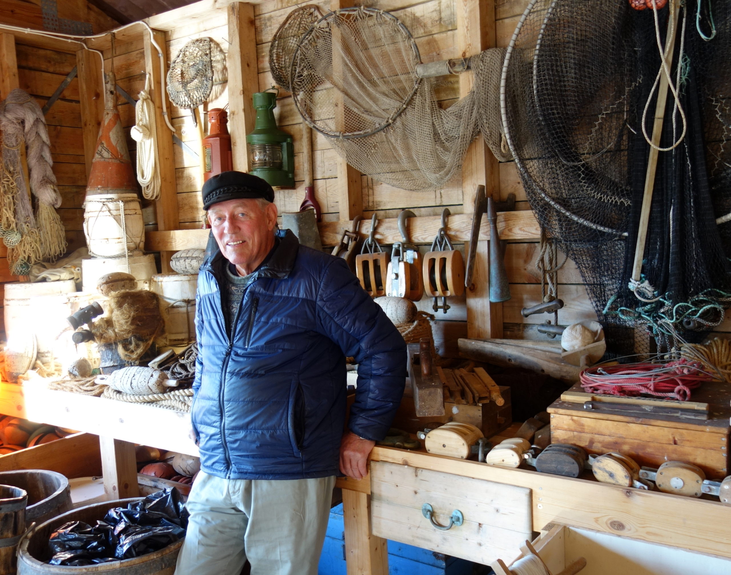 På sjøhusloftet i Toftøysund har Edvin Bakkevik en stor samling med gamle fiskeredskaper, som han gjerne viser fram. Han forteller ivrig om sitt liv som fisker til pensjonistlag, hyttenaboer og skoleklasser. Denne sensommerkvelden er det museumsvenner og andre som får gleden av å høre hans historier.