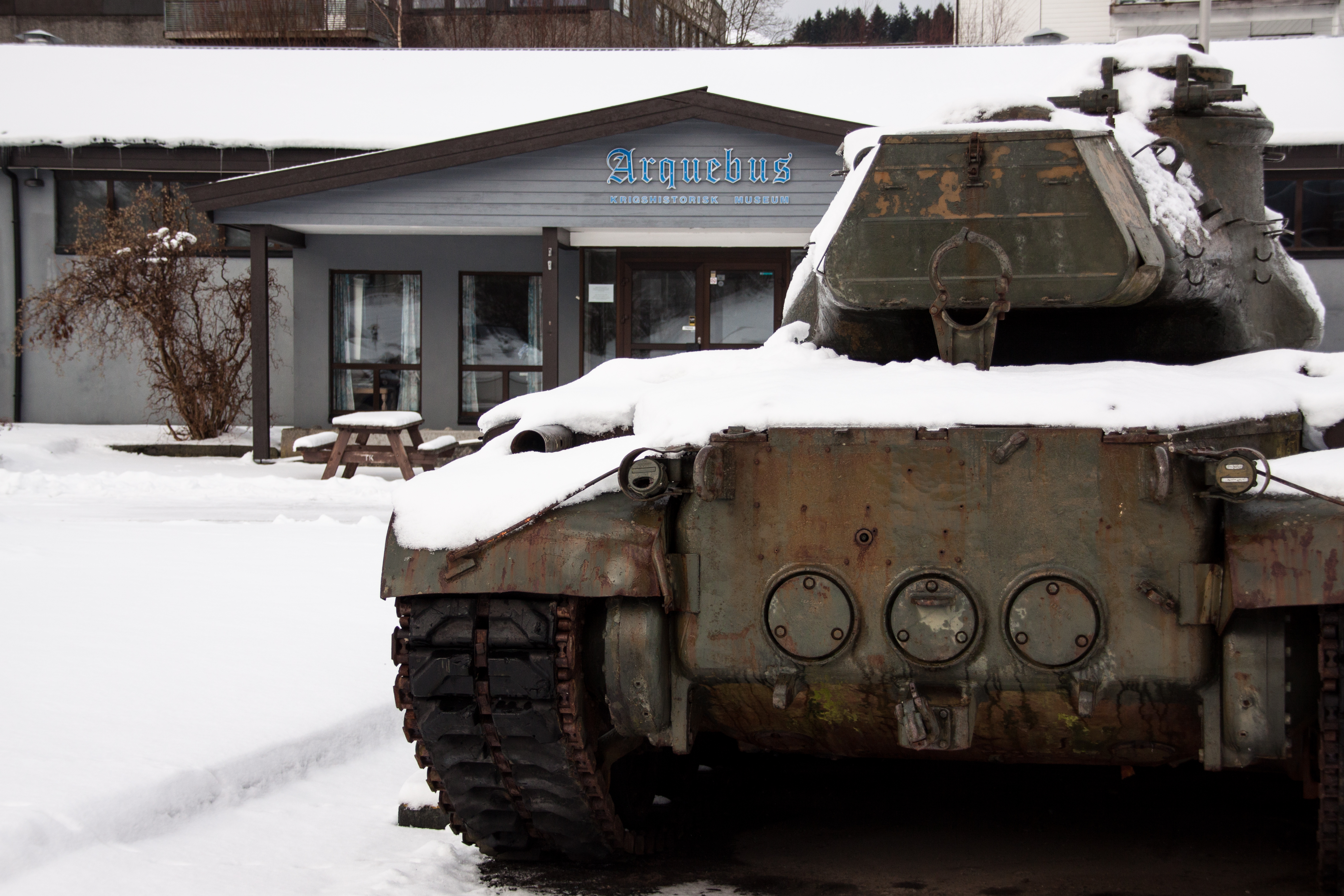 Utstillingen er satt opp bak glassvegger inne i Arquebus krigshistorisk museum.